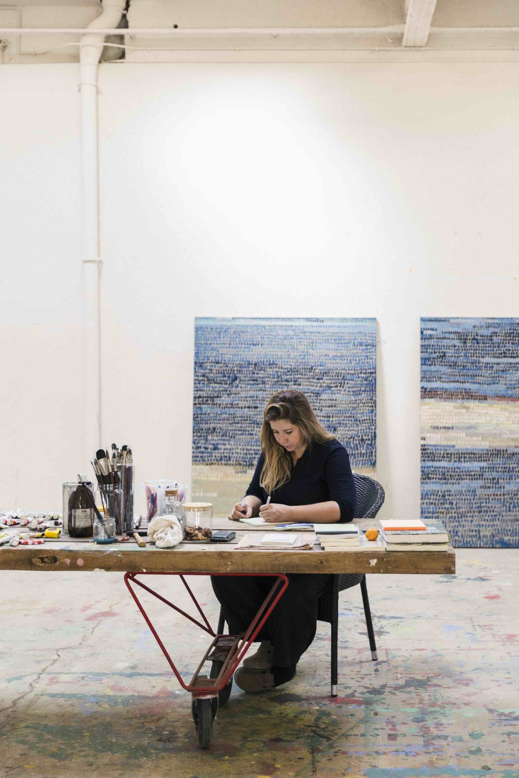 Violeta Maya arrived at Alzueta’s residency and filled every surface with colorful water-soaked canvases during September 2023.