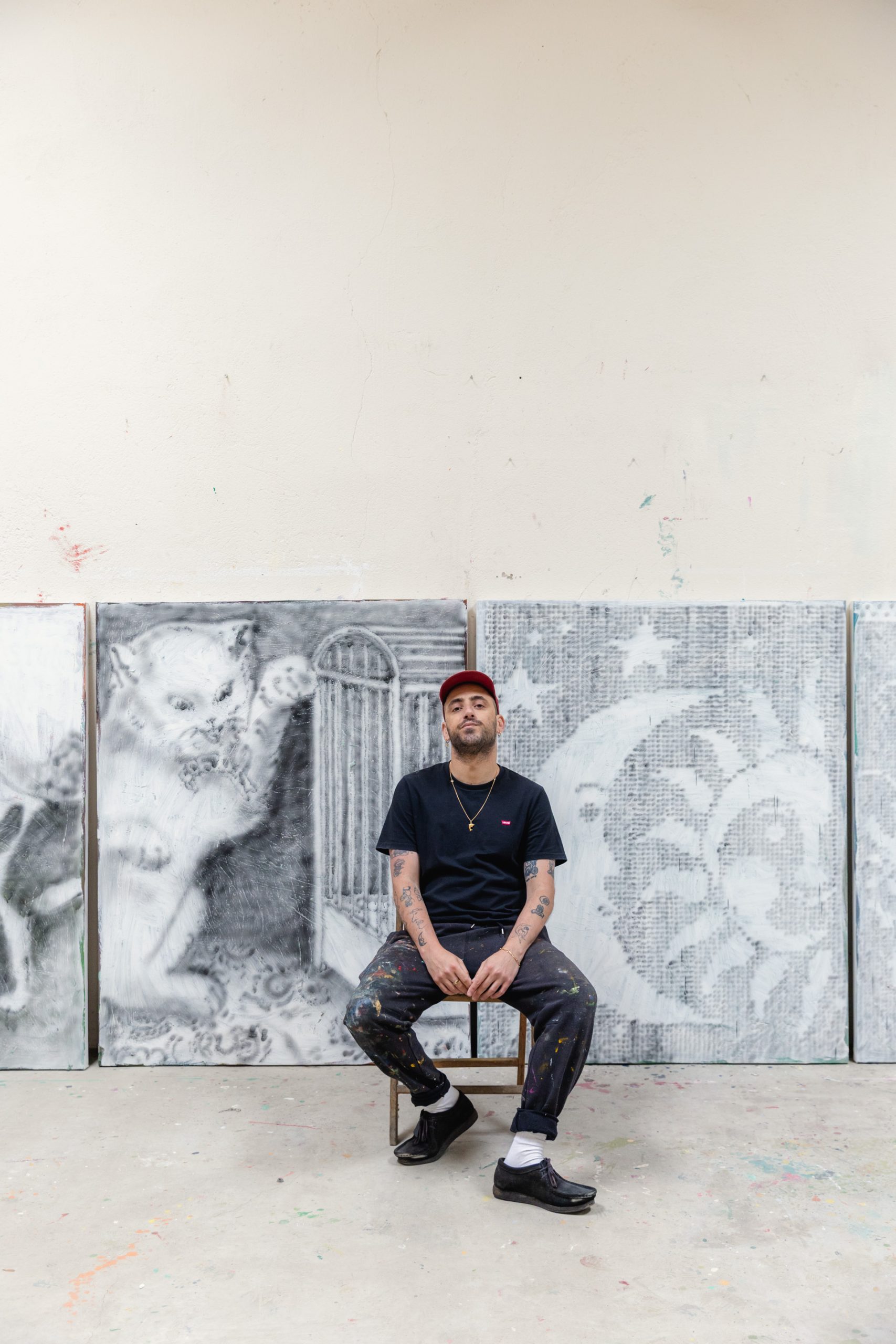 Known for his big format paintings, the British artist worked in new artworks through the month of July of 2021.