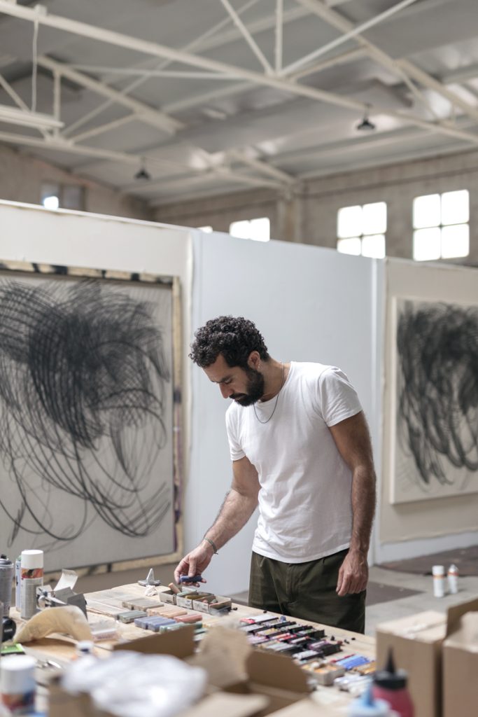 Through October into November of 2021, Aythamy’s gestural paintings filled the residency studio, creating in it an enveloping dimension built through his powerful strokes.