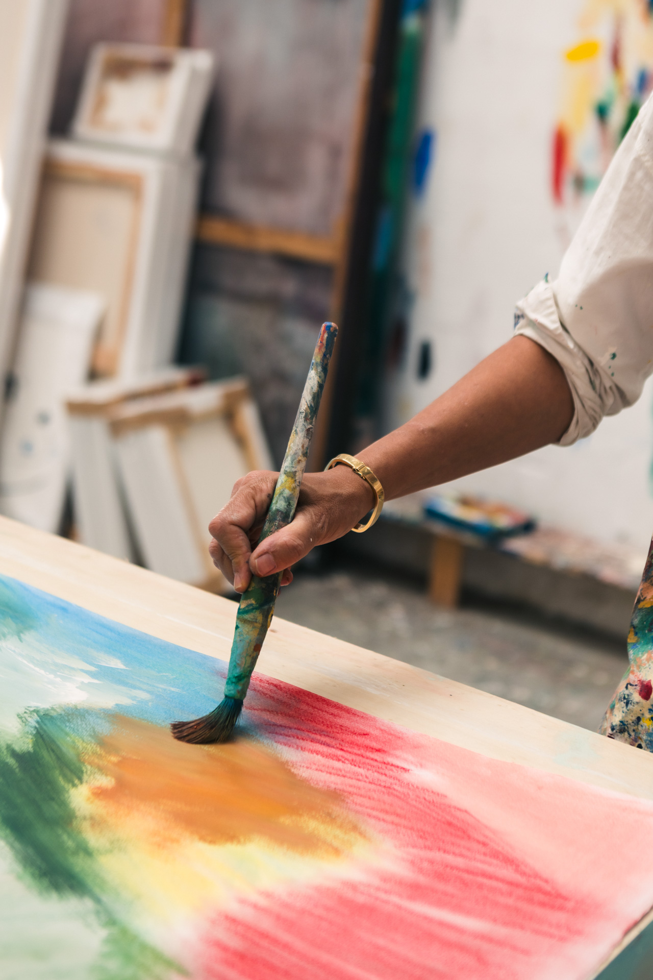 CV: It depends on the day. Sometimes music, sometimes the radio or a podcast. But what I enjoy most is talking on the phone while I paint, as it helps clear my mind. When I’m painting, the less mental noise I have, the better.