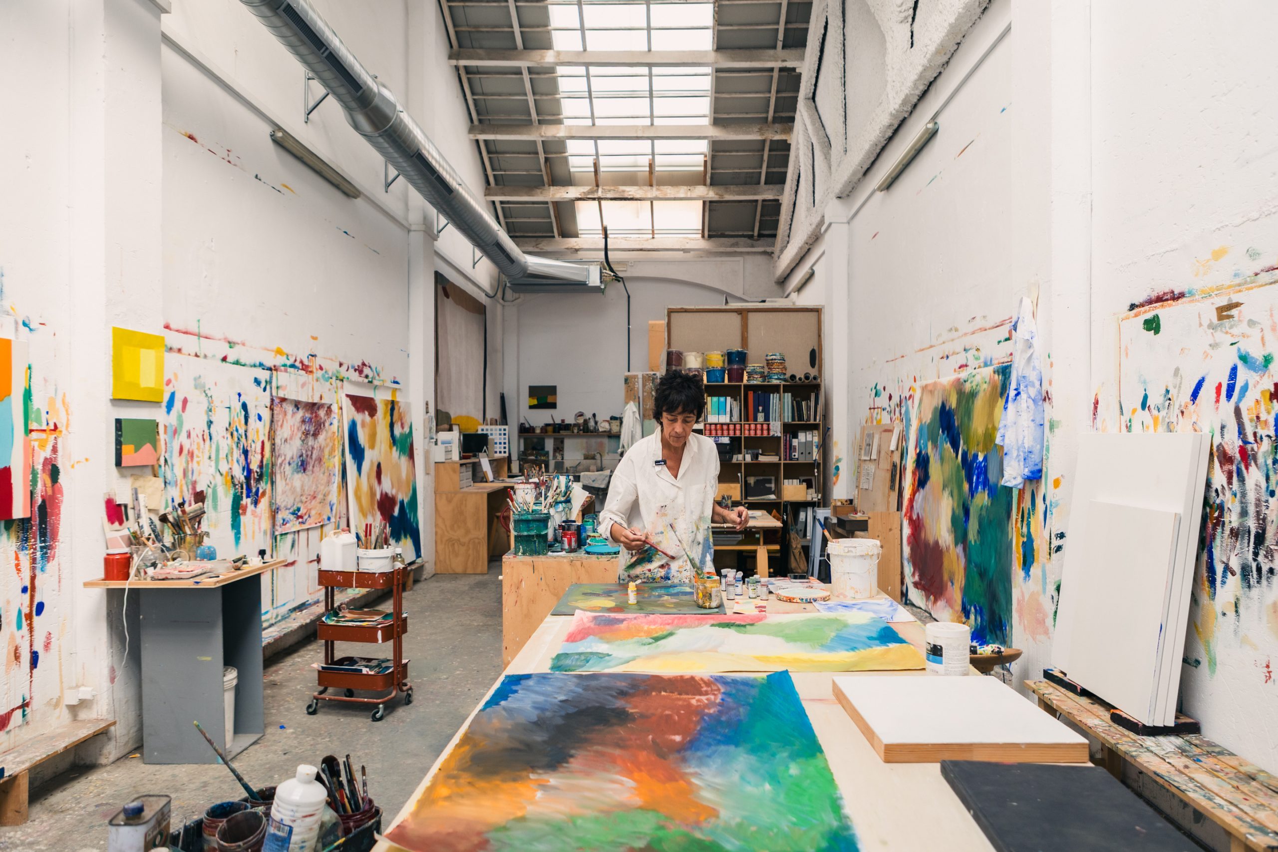 Claudia Valsells’ studio in Barcelona is a bright space where color is thought about, analyzed, and lived. Ordered yet always in motion, meticulous but with that kind of chaos that creative processes generate, it has become the place where the painter develops her chromatic universe. We speak with her about rhythms, processes, and systems.