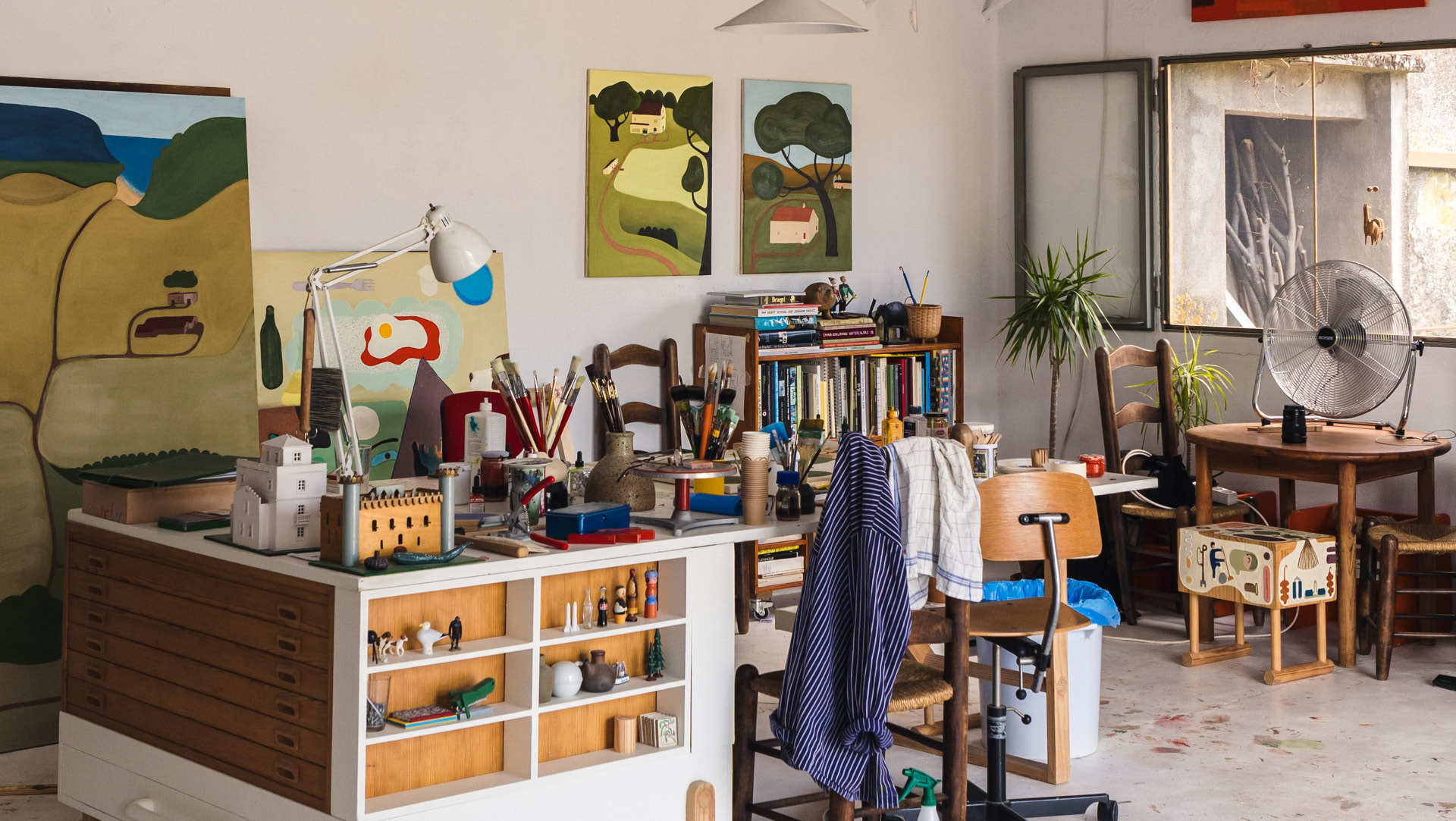 On this occasion we visited Klas Ernflo in his studio in Casavells, a small village in the Empordà region where the Swedish-born artist works. By coincidence, his studio is located in the very same village as our countryside gallery, The Palau de Casavells. Ernflo’s practice moves between painting and sculpture, with a particular sensitivity for everyday objects, shapes, and landscapes.